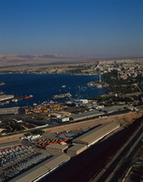 Aqaba, view north west over port and town to Wadi Araba