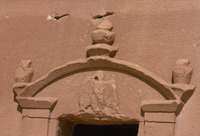 Saudi Arabia. Mada'in Saleh, Qasr al-Bint, detail of tomb on west side Tomb B22/H19