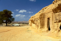 Saudi Arabia. Mada'in Saleh, Qasr al-Bint, tomb on south end