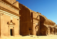 Saudi Arabia. Mada'in Saleh, Qasr al-Bint, tombs on west side (Tomb 23 on left)
