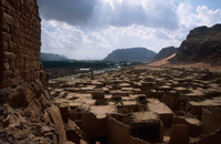 Saudi Arabia. Al-Ula, view south over town, wadi and mountains from Jabal Harra