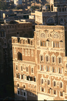 Yemen. Sana'a, house façades, from Samsarat Mansura