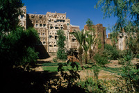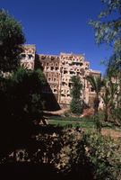 Yemen. Sana'a, houses & gardens in Harat al-Wadi area