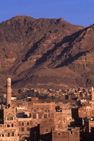 Yemen. Sana'a, Jabal Nuqum and old houses