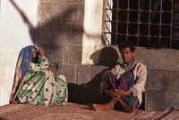 Yemen. Sana'a, people in Narthex of the Bakiriyya Mosque