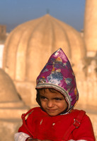 Yemen. Sa'ada, little girl and tombs of Zaidi imams