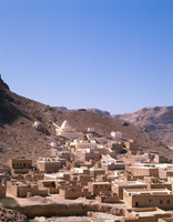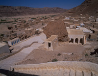 Yemen. Qabr Hud, Hadhramaut, view to town and shrine