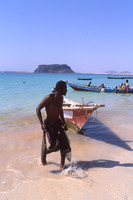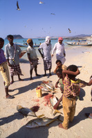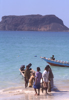 Yemen. Bir Ali fishermen, Husn al-Ghurab behind