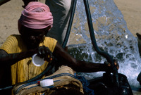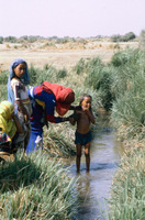 Yemen. Child washed in irrigation channel, north Tihama