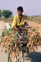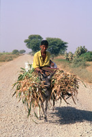 Yemen. Wadi Rima, Tihama, man on laden donkey