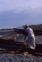 Yemen. Socotra, Hadibou beach, preparing nets