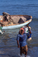 Yemen. Socotra, Hadibou beach, unloading imports