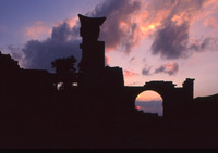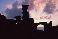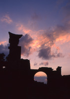 Syria. Bosra, Nabataean gate at sunset