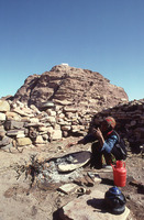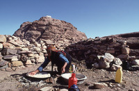 Petra, Jabal Haroun, Bedouin (of Wadi Araba) makes bread