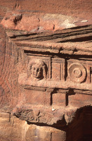 Petra, Lion Triclinium detail of Medusa head on the entablature