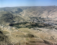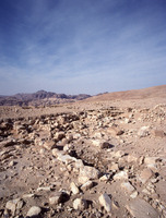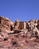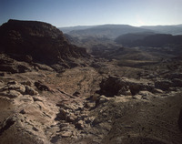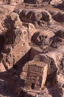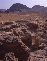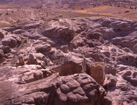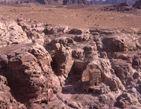 Petra, Snake monument and Djinn Blocks with view north east towards Petra