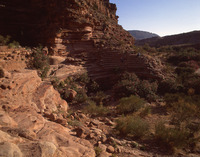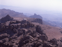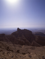 Petra, Wadi Sabra, Nabataean theater and cistern above and ruins