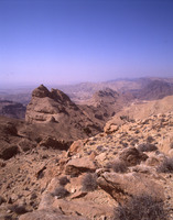 Petra, Wadi Sabra, Nabataean theater and cistern above