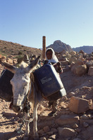 Petra, Bdoul bedouin girl and donkey near cave home