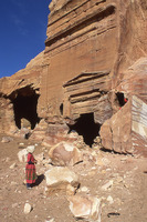 Petra, Bdoul bedouin gril outside tomb home at Mughar an-Nasara