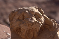 Petra, carved lion's head outside Museum