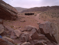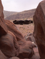 Petra, bedouin tent, dappled sunlight on wall of women's room