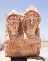 Khirbet adh Dhariye, high relief carving of second male heads, Castor and Pollux (Nabataean)