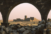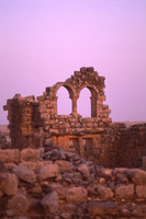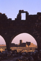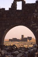 Umm al-Jimal, barracks seen through arch of west church