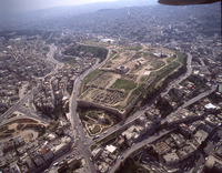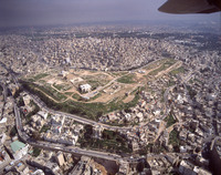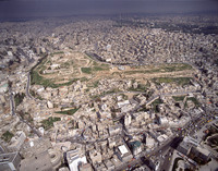 Amman, left - shaped citadel hill (Jabal al-Qala'a) in middle of modern city from south west
