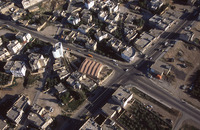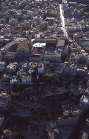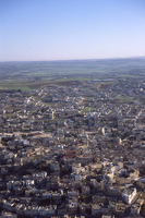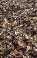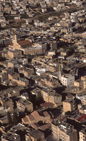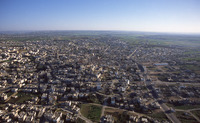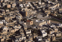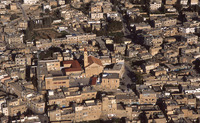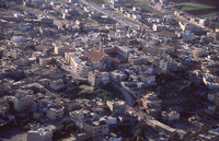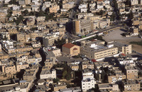 Madaba from east, St. George's Church, Archaeological Park (below) and Catholic Church (left)