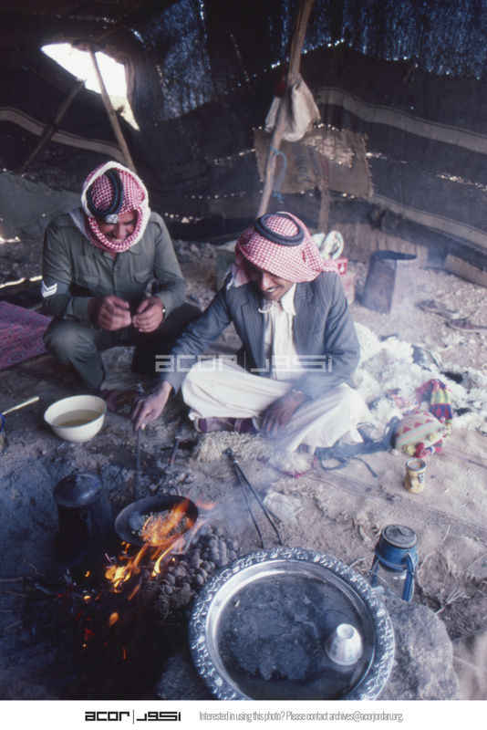 Jordan. Daily life, Bedouin men making coffee (Arabic Coffee/ Qahwa)