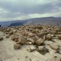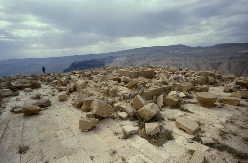 Jordan. Khirbet et-Tannur, view to lower courses of Inner Temenos Enclosure facade