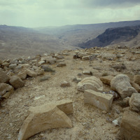 Jordan. Khirbet et-Tannur, remains of colonnade capitals and bases
