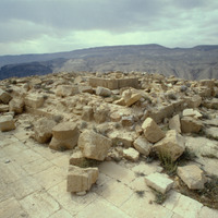 Jordan. Khirbet et-Tannur, view to lower courses of Inner Temenos Enclosure facade