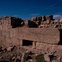 Jordan. al-Qastal, carved lintel from Umayyad palace, eighth century, used in later wall