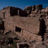 Jordan. al-Qastal, carved lintel from Umayyad palace, eighth century, used in later wall