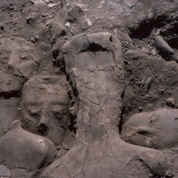 Jordan. Amman, Ain Ghazal, the upper layer of the cache of plaster human statues and busts