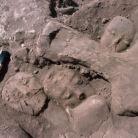 Jordan. Amman, Ain Ghazal, the upper layer of the cache of plaster human statues and busts