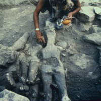 Jordan. Amman, Ain Ghazal, the upper layer of the cache of plaster human statues and busts with Marci Donaldson