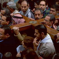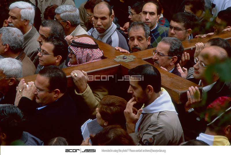 Jerusalem. Good Friday procession of Cross starts, Umariyya School