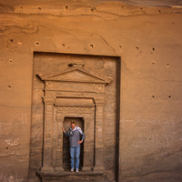 Jordan. Petra, interior of a chamber no. 468, excavated out of the rock, eastern slope of the Jebel ad-Deir. A niche fitted into the back wall of an otherwise unadorned room has a rich entablature with a doric frieze