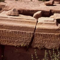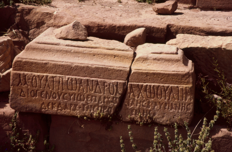 Jordan. Petra, Greek inscription found 1964 on base for statue of a Roman governor of Arabia Qasr al-Bint Temenos
