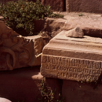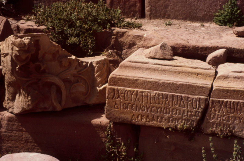 Jordan. Petra, Greek inscription found 1964 on base for statue of a Roman governor of Arabia Qasr al-Bint Temenos