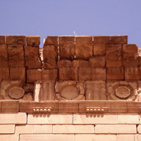 Jordan. Petra, Qasr al-Bint, Doric frieze in situ