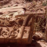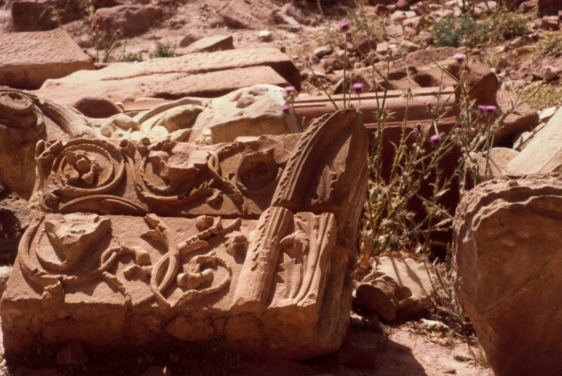 Jordan. Petra, Qasr al-Bint, fragments of south-east pilaster capital