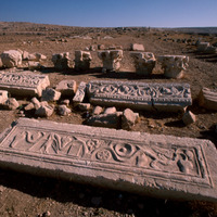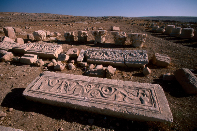 Jordan. Yajuz, reused Roman architraves, capitals and bases in the church