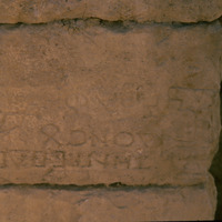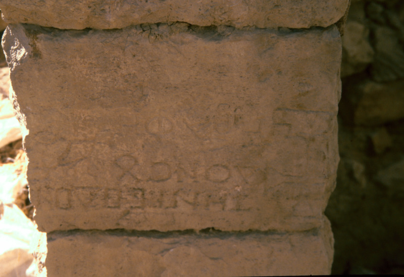 Jordan. Tafilah, Buseira, "Recycled" Greek Inscription, turned upside down, on an arch of an Ottoman Building at Busayra