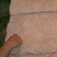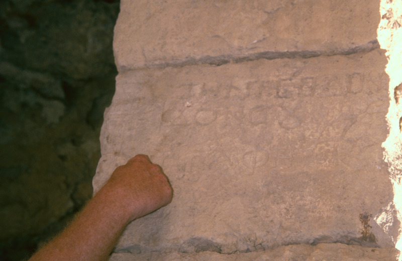Jordan. Tafilah, Buseira, "Recycled" Greek Inscription, turnd upside down, on an arch of an Ottoman Building