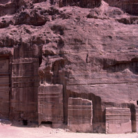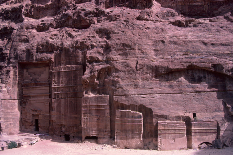 Jordan. Petra, Outer Siq, tombs on the street of façades