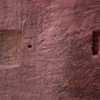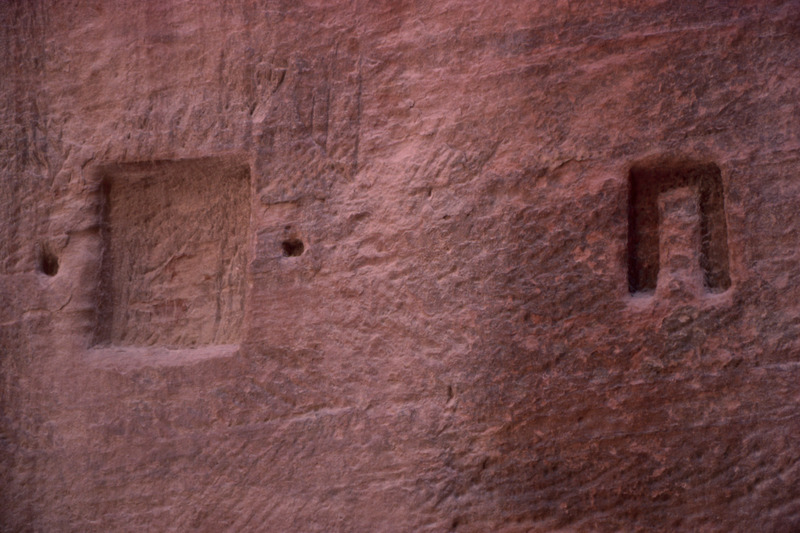 Jordan. Petra, Siq, two cult niches with betyls carved into a rock face in the gorge of the Siq